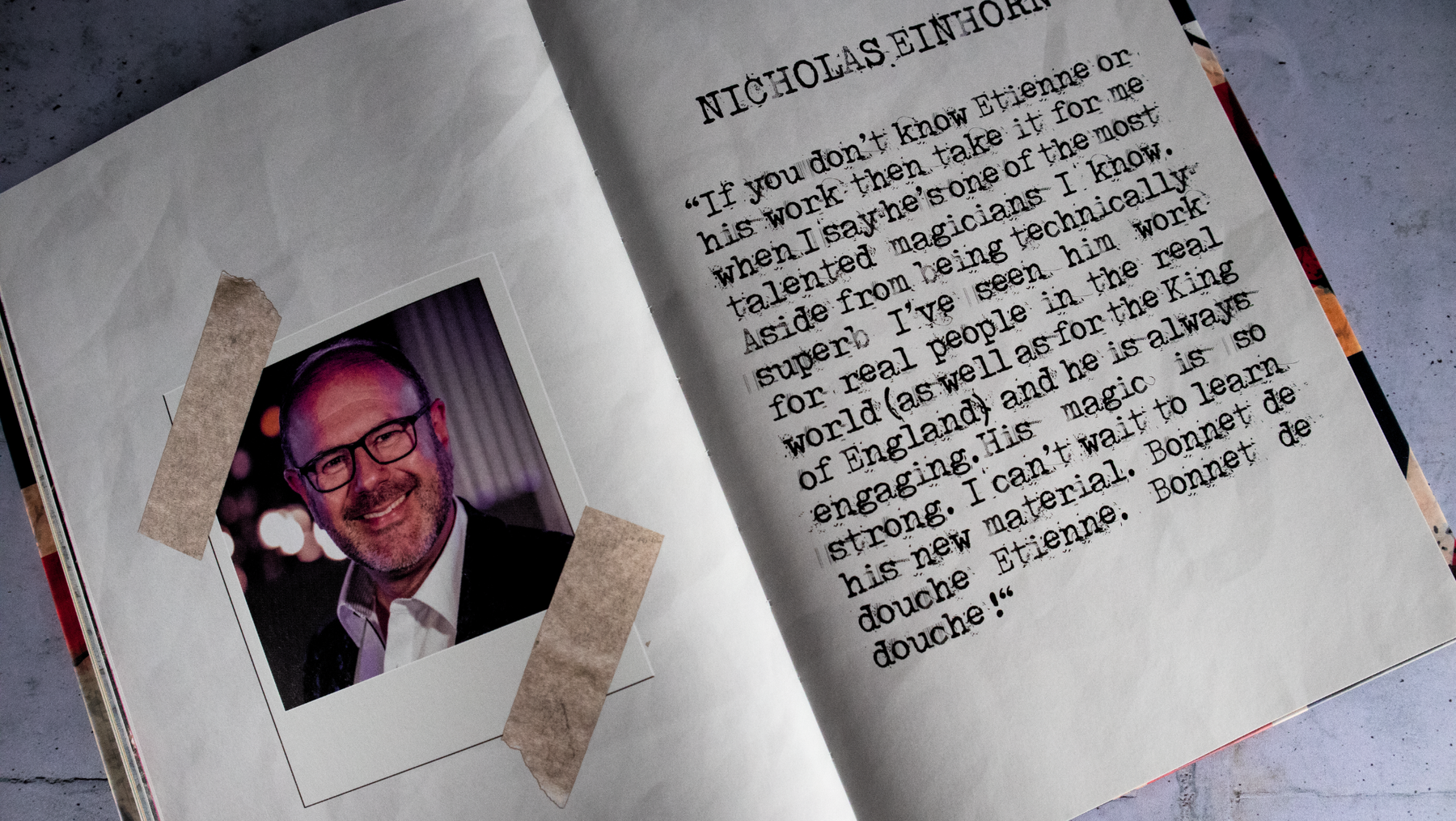 En complément des routines de cartes, le livre dévoilera également une superbe routine de matrix de pièces où Étienne apporte sa propre touche, transformant cette routine classique en un moment de magie unique, visuel et captivant. En outre, les lecteurs pourront découvrir une routine de corde qui occupe une place toute particulière dans le cœur de l’artiste. C’est en effet l’une de ses routines préférées, qu’il a souvent présentée lors de spectacles et qui ne manque jamais de faire réagir le public avec une présentation rythmée et pleine d’humour.